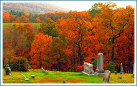 Located on the road into Paw Paw, Camp Hill is now a local cemetery encircled by a rutted dirt road. It offers a spectacular panoramic view of mountains to the west and the town and Potomac River to the north.